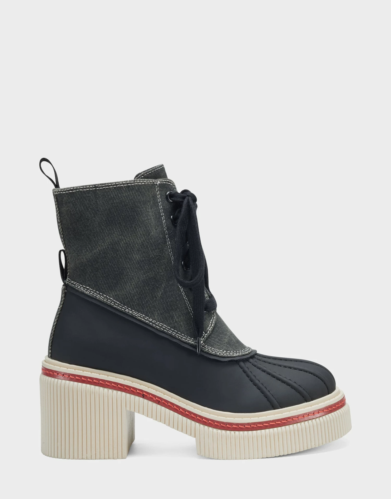 Red haute: A contrast stripe on the outsole adds just the right pop of color to our Stellar boot. Designed in a combination of waxed canvas and rubberized faux leather, it’s finished with a lace-up closure. A go-to look all weekend long: Think jeans and a sweater or leggings and a tunic top.