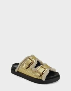 The Olivia is a comfortable women’s Sandal in Gold Faux Leather. This women’s Sandal has a flat heel and is perfect for everyday. Rich with shoe comfort, the Olivia Sandal in Gold Faux Leather possesses a moulded, padded footbed and many more great shoe comfort technologies. The Olivia comfortable womens shoe Sandal in Gold Faux Leather can be purchased with free shipping and free returns for all orders above $75.