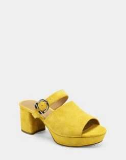 The Cosmic is a comfortable women’s Sandal in Yellow Genuine Suede. This women’s Sandal includes a platform heel and is perfect for evening and everyday dress. Rich with shoe comfort, the Cosmic Sandal in Yellow Genuine Suede possesses a very slight pitch for a ‘flatform feel’, a signature diamond flex outsole and even more superior shoe comfort features. The Cosmic comfortable womens shoe Sandal in Yellow Genuine Suede includes free shipping and free returns on all orders over $75.